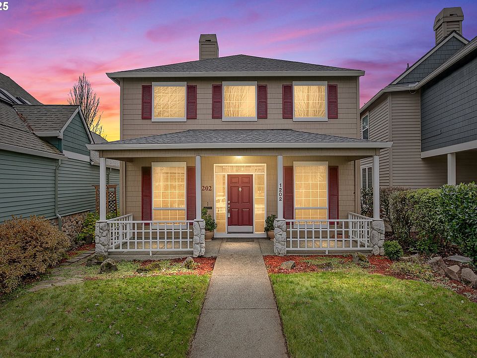 OPEN HOUSE SAT & SUN 1-4 pm (11/22 & 11/23) Welcome to this stunning FORMER MODEL HOME in the highly sought-after Jones Farm neighborhood of Hillsboro. Perfectly positioned along the edge of CIRCLE PARK, this home blends timeless craftsmanship, thoughtful design, and exceptional comfort. Step inside to find an inviting layout centered around a three-sided fireplace that connects the kitchen, dining room, and great room. Thesoaring ceilings and custom columns define the living spaces withelegance, while natural light enhances every corner. The kitchen shines with custom cherry cabinetry, granite countertops, above- and below-cabinet lighting, and nearly new stainless-steel appliances, including a built-in microwave and a convection, air-frying capable oven. Original hardwood floors span the entire main level, adding warmth and sophistication throughout. Upstairs, the primary suite offers a private second-level patio, a walk-in closet, and a luxurious en-suite bath with dual vanities, a soaking tub, a stand-up shower, and a skylight. Two additional bedrooms and a full hallbath complete the upper level—perfect for guests, family, or a homeoffice.Recent updates include new interior paint, new carpet, a newer 97% efficient HVAC system with AC, a newer roof, and newer exterior paint, making this home truly move-in ready. A large covered front porch and an oversized two-car garage add comfort and curb appeal. Located minutes from major employers like Intel and Nike, with easyaccess to shopping, dining, and mass transit, this home offers the bestof Hillsboro living. Enjoy the blend of community charm, convenience, and modern upgrades that make Jones Farm one of the area’s most desirable places to call home. [Home Energy Score = 6. HES Report at https://rpt.greenbuildingregistry.com/hes/OR10242918]