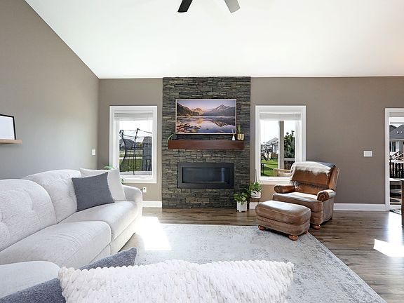 Immaculate ranch in The Grove with over 3,200 sq ft of finished space! The open-concept main level features a cozy fireplace, custom drop zone with built-in lockers, and a thoughtfully designed kitchen that flows into the dining and living areas. The laundry room adds function with custom shelving and cabinetry. The primary suite is a retreat with a spa-like wet room including a soaking tub, dual shower heads, and private toilet room. The finished lower level impresses with a full wet bar and custom countertop, spacious family room, gym/play area, and a unique safe room or hobby space secured with a vault door. Additional highlights: 4 bedrooms, 3 baths, covered deck, oversized 3-car garage, and a basement heat pump providing year-round comfort at the touch of a button. High-end finishes and unique details throughout combine comfort, style, and practicality. Located in Ankeny Schools with easy access to parks, trails, shopping. Truly a must-see!
