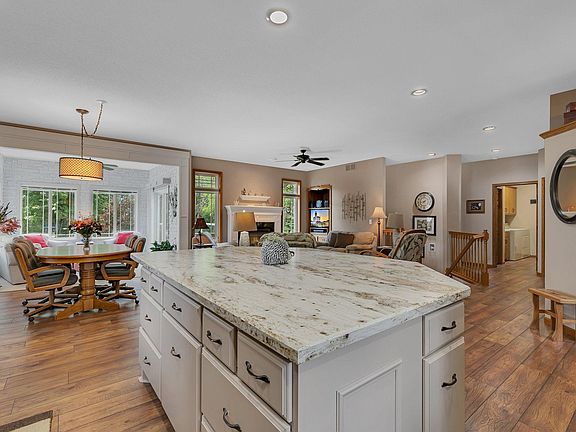 Breathtaking one owner rambler offers so much to its new owner. Open floor plan, remodeled kitchen with generous 5x7 center island. Main floor master suite with huge WIC. Main floor laundry. 3 season porch with easy open windows & heated ceiling fan. 4 season room with plenty of natural light to enjoy. Both rooms lead to two different decks. Lower level family room has the perfect kitchen area for entertaining & private walk to back yard where you can enjoy your aggregate patio. Don't miss the garden shed under the sunroom. 3 car insulated & heated garage with epoxy floors & sink, counter & built-in refrig. Store all your toys in your garage pantry. Check out the meticulous yard with beautiful landscaping & in-ground sprinkler system. This home is sure to impress.
