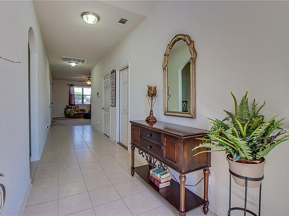Delightful doll house, 3 bedroom 2 bath built in 2012. Quiet neighborhood with pool and pavilion. Large green space and walking trail behind this property to provide wide open feeling in back yard. Covered back patio for gathering off the dining area. Open kitchen with island and abundant counter space and cabinets along with pantry. Spacious master with sizable master walk in closet, large soaking tub and separate shower. Secondary bedrooms are split from master with generous closets! Come and get this one quickly before its gone. All this for under $200K.