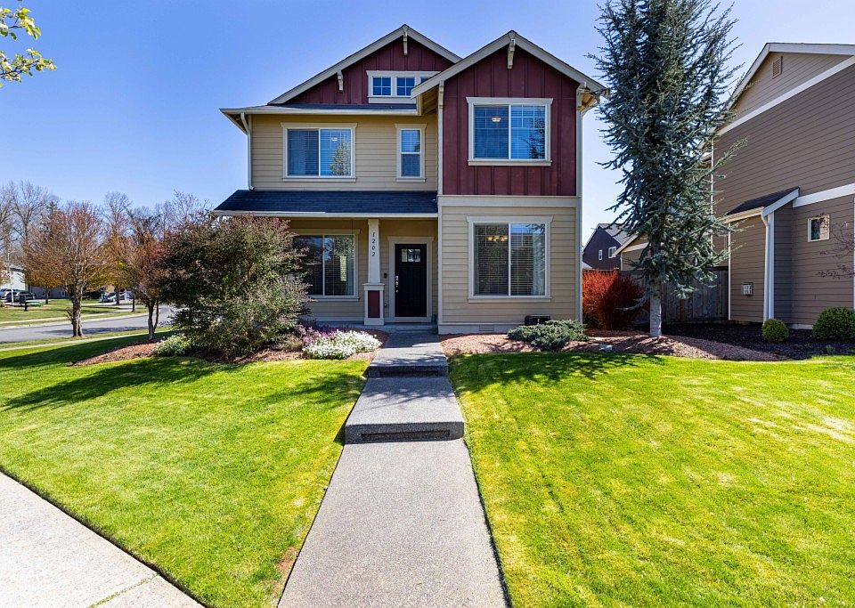 Meticulously maintained, large corner lot in the highly desirable neighborhood of Hidden Lakes. Welcome home to this bright and inviting floorplan. This home has it all! Beautiful hardwood floors throughout downstairs. Kitchen features easy clean slab granite counters, SS appliances, and a gas range. A spacious island with a separate dining room for entertaining. Living area with a cozy gas fireplace. Upstairs utility room close to ideal spaced bedrooms and bonus loft area. Escape to your master with a 5-pc bathroom w/ WI closet. Relax outside under a covered patio with a gas fireplace. Plenty of garden space and an additional fenced side yard. Ample storage throughout. Close to downtown, parks, and trails. Schedule a tour before its gone!