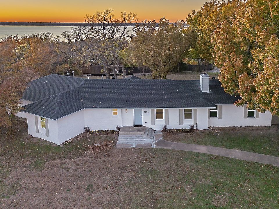 Stunning, fully renovated home on a rare .96-acre lot in the heart of Rockwall with serene, tree-framed views of Lake Ray Hubbard. Taken to the studs and rebuilt with premium finishes, this home features new: roof, sheetrock, insulation, flooring, electrical, plumbing, HVAC, water heater, appliances, cabinets, doors, windows, countertops, sinks, and designer fixtures. The kitchen and living room now boast raised ceilings, enhancing the open, airy feel of the home.
