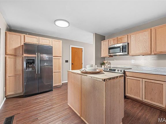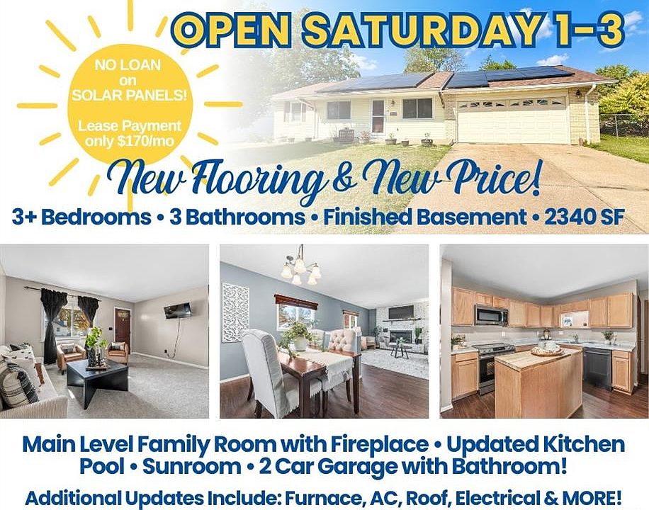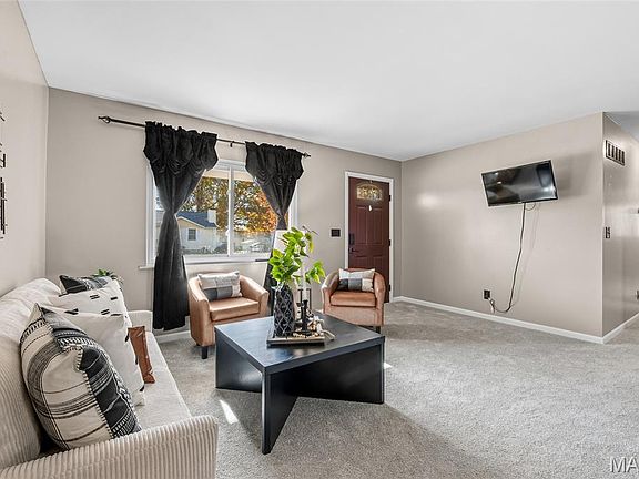 Welcome home to this spacious 3+ bedroom, 3-bath, ranch-style home offering the perfect blend of comfort, updates, and entertainment space! Walking distance to Glazebrook Park!! Inside you'll find a step-down great room featuring a cozy fireplace, separate dining area, an updated kitchen with large center island & all appliances included. BRAND NEW CARPET just installed in living room, all three bedrooms, hall, stairs and FINISHED LOWER LEVEL! Enjoy year-round comfort with replacement windows, new furnace and AC in 2022, and a bright 3-seasons room perfect for morning coffee or to cool off from the sun! Head outdoors to your above-ground pool with newer sun deck—a great spot for summer fun—plus a pool box and storage shed for all your toys, tools and gear. Downstairs, a finished basement offers endless possibilities— Owner's Suite, family room, recreation space, home office, or guest suite—with a full bathroom. Major updates include: Roof (2018), Furnace & A/C (2022), Sewer line (2024), Water heater (2024), New electrical panel & 200-amp service, Whole-home water filtration system w/ 10-year transferable warranty. Wall-mounted TVs stay with the home for your convenience. Seller will pay solar transfer fee, buyer only needs to take over $170/mo lease. NO LOAN to apply for! Copies of most recent Ameren bills are available to review!!