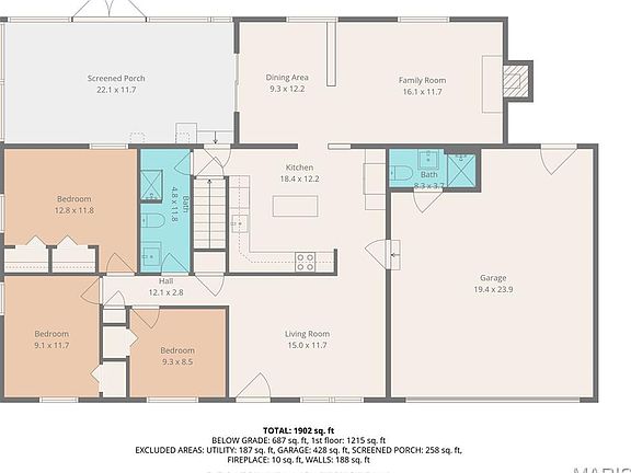 Cozy fireplaceSeparate dining areaReplacement windowsStep-down great room