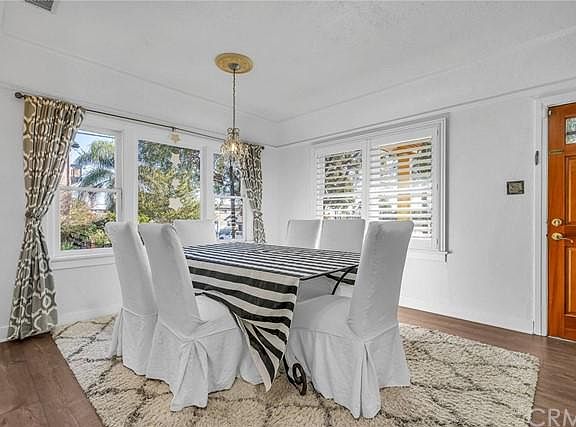 Desirable San Pedro Upper Vista Del Oro neighborhood at the south end of the Palos Verdes Peninsula. Classic Spanish 3 Bedroom home situated on a deep corner lot elevated above street level and framed with Beautiful mature trees on the parkway. The home is a comfortable 1412 sqft on a 5395 sqft lot with 2 car garage and fenced backyard. Traditional Spanish with an elegant living / dining area, breakfast nook, and utility room. Be sure to see the architectural details on the front porch cover. The elegant living/dining room has a tasteful chandelier, cove style ceiling, shutter style blinds, and updated plank composite flooring. The classic kitchen has tiled counters and terra cotta style tile floor. The spacious tasteful bathroom has tiled tub walls and flooring, built in floor to ceiling linen / storage cabinets, and pedestal sink. The rear bedroom has a private French door entrance to the patio. You will fall in love with the spacious rear yard with multiple entertaining areas. What a pleasant retreat. From the pergola style covered patio with terra cotta style tile, to the new lawn area, and natural stone walkway patio area. The garden pergolas along the fence are awaiting your new vines to climb up and then charm your guests. From the gated yard you can exit to the 2 car garage with additional storage area and driveway for off-street parking. Realist Tax shows the zoning as LARD2- check with LA city for additional building opportunities. Approximately 2004 there were updates to the home including in attic forced air heat, electric panel, abs drain lines. Other updates include some Copper plumbing, and garage electrical improvements.