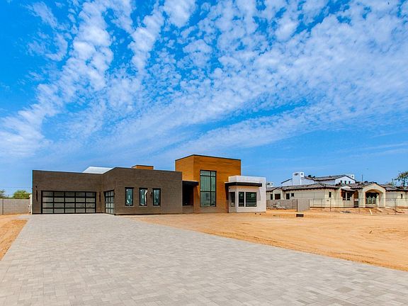 New Contemporary Build in Prime Scottsdale Location - Completion September 2025. Experience modern living at its finest in this stunning new construction by Thomas James Homes, located in one of Scottsdale's most desirable neighborhoods. This thoughtfully designed single-level contemporary residence offers 5 bedrooms, 5.5 bathrooms, and a 4-car garage, all beautifully appointed with high-end finishes and designer details. A striking interior courtyard welcomes you into a bright, open-concept floorplan featuring wide plank wood flooring, sleek flat-panel cabinetry, and a quartz waterfall kitchen island that anchors the expansive great room and luxury kitchen. A separate prep kitchen and bonus room enhance functionality and flow, perfect for entertaining or everyday ease. The grand suite is a true retreat with a spa-inspired bath complete with a freestanding soaking tub and oversized walk-in shower. All secondary bedrooms include en-suite baths, offering comfort and privacy for family and guests. Additional highlights include a private office and fully landscaped front and backyard with a resort-style pool and spa. Located just minutes from Scottsdale's premier dining, shopping, and entertainment, this exceptional home is scheduled for completion in August 2025.