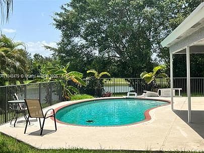 Welcome to this exquisite 4-bedroom, 2.5-bathroom single-family home with a pool, situated on a serene cul-de-sac with lake views in the highly sought-after Boca Winds community. This property is perfect for both families and individuals, offering a wealth of desirable features. The interior showcases elegant, high-shine ceramic tile and wood flooring throughout. The upgraded kitchen features rich wood cabinetry, granite countertops, and stainless steel appliances. Vaulted ceilings enhance the sense of space and light. Additional conveniences include a separate laundry room and a fenced-in pool area for added privacy. The expansive yard further enhances the appeal of outdoor living, and accordion hurricane shutters provide added security.