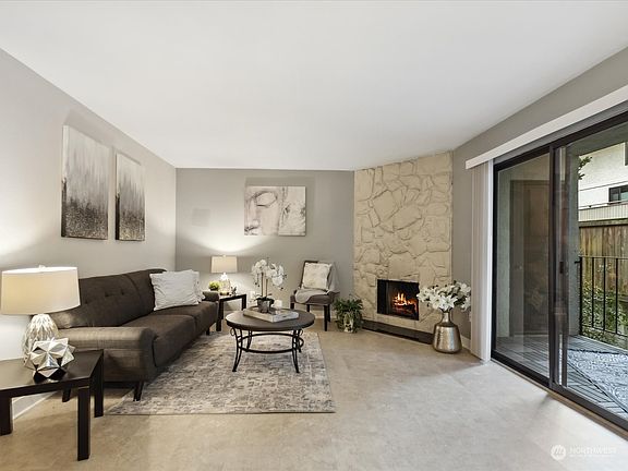 Embrace the vibrant lifestyle of Kirkland's desirable Juanita neighborhood, w/ beaches, parks, restaurants & shops just blocks away! Step inside to discover vinyl plank flooring throughout, complemented by tile flooring in the kitchen & bathroom. Spacious living room boast a cozy fireplace, creating an inviting atmosphere for relaxation or entertainment. Slide open the balcony doors to let in fresh air & enjoy your morning coffee or evening relaxation. The bright kitchen features granite countertops, newer SS appliances & ample cabinet space. Generous walk-in closet in primary bedroom, providing plenty of storage space. This condo is ideal for accommodating guests, setting up a home office, or creating a cozy sanctuary. Quick access to I405