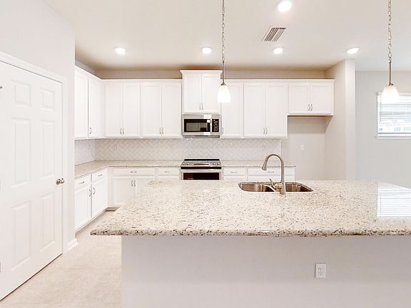 The Caverton is a neighborhood favorite. The large front porch is a great place to sit and enjoy the tranquility of Hampton West. Once you enter through your glass front door you will feel how open and airy the Caverton is. Your new kitchen has beautiful granite countertops and 42 inch white cabinets. The kitchen has a huge island perfect for entertaining. The open living space has lots of natural light due to all of the windows in your family room and dining room. The Owner's retreat is the perfect space to relax and unwind, complete with a garden tub and separate shower. The Owner's closet is massive and sure to fit even the largest wardrobe. The extended lanai in the backyard offers tons of space for barbecuing or just enjoying some shade Ready NOW
