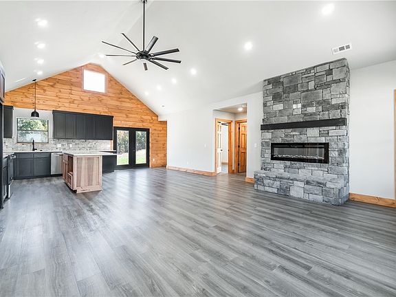 If you are looking for a luxury and convenience in one, you might want to check out this new cabin home on a quiet 1-acre lot on Guyll Ridge Road in Benton County - the best place to live in Arkansas. This home has a split-floor plan with 15-foot high ceilings and an electric log fireplace that will make you feel cozy and comfortable. The home also has luxury vinyl plank flooring that adds elegance, and ceramic tile that adds style and function. You can enjoy two outdoor living spaces: a front porch that is covered and perfect for relaxing, and a back deck that is great for hosting or enjoying the views of the countryside. This home has no POA restrictions, plenty of parking space from the side-entry two-car garage and the oversized driveway, and high quality finishes. This is a rare opportunity to own a new and beautiful cabin home.