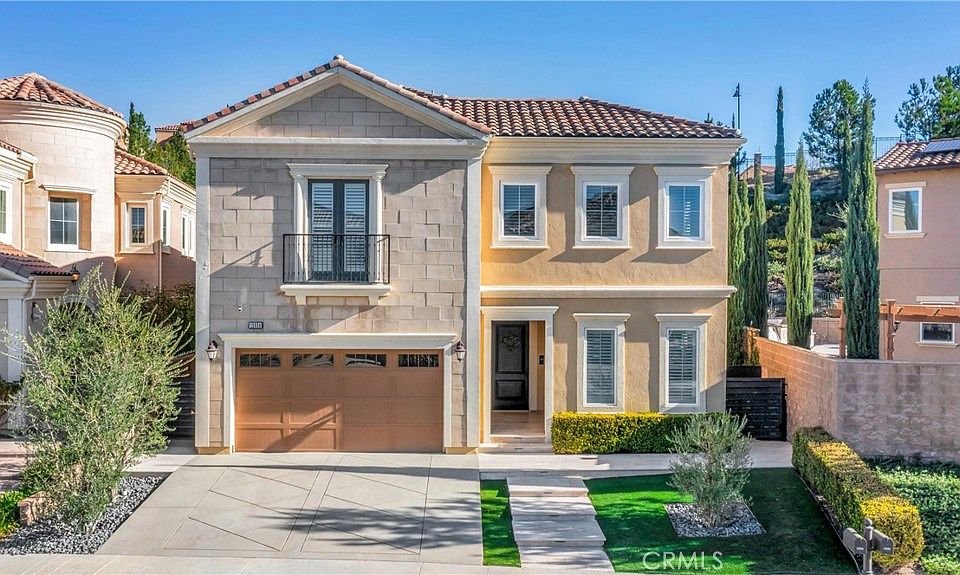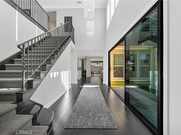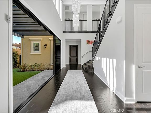 Stunning, completely upgraded, 5 bed, 5.5 bath, 3900+ sf smart home in the 24-hr guard gated Bella Vista community of Porter Ranch. Great curb appeal w/ stately exterior & well-manicured landscaping. Exquisite, top-of-the-line finishes throughout, like high ceilings, rich hardwood floors, recessed LED lighting, crown molding, & more, create excellent contemporary elegance. Enter to dramatic 2-story ceilings highlighted by custom chandeliers, open staircase & stacking glass walls that open to a side yard. Spacious open great room includes bright living area w/another stacking glass wall to the back patio & pool area, dining room w/ custom built-in buffet, and chef’s kitchen featuring an oversized waterfall island w/ seating, sub-zero fridge & beverage fridge, double oven, large walk-in pantry, & abundant soft-close cabinets & drawers. A sizable, en-suite bedroom w/ private ¾ bath downstairs makes a fantastic guest suite. The main level has a powder bath convenient for guests, additional laundry hookups, & oversized mudroom/utility room/workshop w/ direct access to the attached 2-car garage. The upper level opens to a spacious loft and includes 4 bedrooms & 4 bathrooms. The luxurious primary suite boasts tray ceiling, private terrace, expansive walk-in closet, & spa-like en-suite bath featuring floor-to-ceiling marble walls, dual vanities, custom built-in storage, freestanding soaking tub & separate oversized shower with bench seating. Two additional bedrooms have en-suite bathrooms, one w/ French doors out to a Juliette balcony, while the 4th bedroom enjoys access to a hall bathroom. Plenty of space to create a home office/gym/art studio, etc. A second-floor laundry room has ample room for extra storage, counter space & sink. Extensively upgraded yard is a true oasis w/ spectacular infinity edge pool & spa, conversation area w/ firepit, covered patio w/ fireplace, built-in BBQ area w/ granite waterfall counter, & drought conscious turf. Additional features include full AV & Automation home control of lights, motorized blinds, & built-in speaker system in all rooms w/ surround sound in living room & primary bedroom; household water softening filtration & alkaline systems; tankless water heater, Tesla Solar system w/ 3 batteries for solar storage; & garage wired for EV hookup on both sides. Community offers community pool, spa, & 24-hr security. Situated in the heart of Porter Ranch near shopping, dining, entertainment, recreation, & award-winning schools.