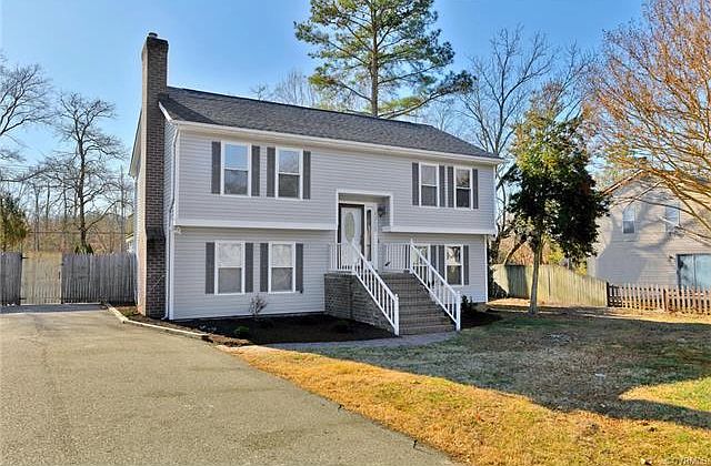 Come see lovely split foyer 2 Story home in the Clarendon subdivision. The home has 4 bedrooms with 2 baths. Brand new flooring throughout the home. Brand new kitchen appliances. Home offers a a living room and a Family Room with Fireplace. Freshly painted also! Move in ready! Huge 2nd story deck overlooking a large backyard with another level deck. It also boasts a screened porch off of the first level. No known defects but chimney will convey as is. Great location! Very near 288 and Powhite!