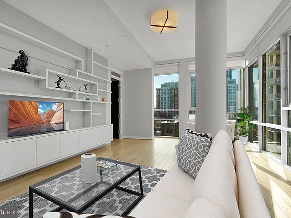 This stunning 2-bedroom, 2-bath corner unit in Reston Town Center offers an exceptional living experience! With floor-to-ceiling windows and 11-foot ceilings, the home is flooded with natural light. The chef’s kitchen features top-of-the-line Miele appliances and a Sub-Zero fridge. Enjoy the vibrant town center just steps away, full of dining options, and take in beautiful sunsets from your own dining room. The living room is perfect for relaxing with a custom-designed bookcase complete with a rolling ladder. The spacious primary bedroom features a custom walk-in closet, while the en-suite bathroom boasts dual sinks, plenty of storage, a soaking tub, and a shower. The second bedroom is equally bright and spacious, also with a custom-designed walk-in closet. This home is truly move-in ready! Mid-town North is an intimate, secure building with concierge service and great amenities, including a fitness center, entertainment room, rooftop, and meeting room. Two secured side by side parking spaces and a storage unit convey. The condo fee covers gas and water. With easy access to the Reston Metro and major commuter routes, this home is ideally located for both work and play. Don't miss your chance to see it in person—schedule a private tour today