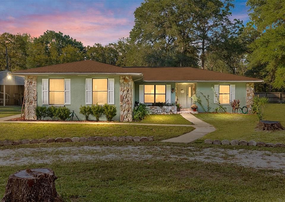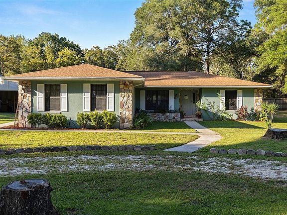 Welcome to your private, peaceful country retreat! This 4-bedroom, 3-bath home offers 2,003 sq ft of living space with a newer roof, A/C, and water heater (al 2020) for peace of mind. Inside, the master and kitchen feature tile flooring, while the other two bedrooms have laminate floors. Ceiling fans are found throughout, adding comfort and efficiency. Enjoy a fully self-contained in-law suite with its own private entrance, central air, and tile flooring throughout—perfect for guests or extended family. The property also includes three outdoor buildings and a shed, ideal for hobbies, storage, or workshops. Sitting on A1-zoned land, this property offers rare flexibility and endless possibilities. Just minutes from Ocala shopping, Dunnellon’s Rainbow River State Parks, riverfront dining, walking & biking trails. Zoned for great schools, this home combines comfort, privacy, and convenience. Don’t miss your chance to own a piece of Rolling Hills—schedule your showing today!
