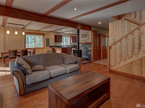 Spacious, well thought out "Getaway" cabin. This home offers a "cabiney" feel with lots of wood, mixed with a European flair with a modern touch. 3 ample sized bedrooms, 3 full baths and an open main floor living area. Perfect for entertaining. Granite counters, Master upstairs with jetted tub, skylight and tiled shower. This property backs to Mt. Baker National Forest land. Gated community. Mt. Baker Rim amenities incl. tennis courts, pool, clubhouse, picnic and play areas. $635 annual dues.