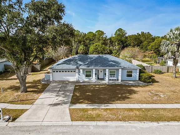 Welcome to this beautifully updated 3-bedroom, 2-bathroom home with a 2-car garage, nestled in the highly sought-after Colonial Hills community! Set on a generous .54-acre lot with no rear neighbors, this property offers the perfect blend of privacy, comfort, and modern upgrades — with no CDD fees. Enjoy peace of mind with major improvements already completed: New roof (2024) New A/C (2023) Brand-new hurricane-rated windows (2025) Water heater replaced (2023) Step inside to find an inviting open floor plan with cathedral ceilings, creating an airy, spacious feel throughout. The interior has been tastefully remodeled and features generous cabinet space for effortless organization. A mini-split system has been added to the garage, offering flexibility for extra living space, a workshop, home gym, or hobby area. The expansive fenced backyard is truly a standout—ideal for gatherings, play, pets, or simply enjoying Florida living with room to spare. Built with solid block construction in 2000, this home is move-in ready and built to last. This is a rare opportunity to own a well-maintained home on a large, private lot in a desirable community—all with no CDD fees. Come see what makes this property so special!