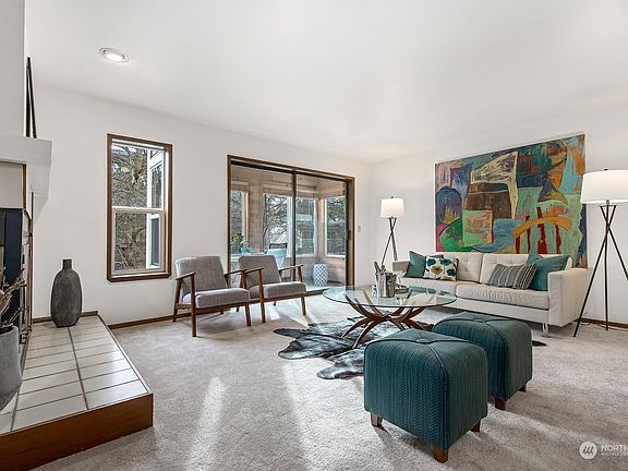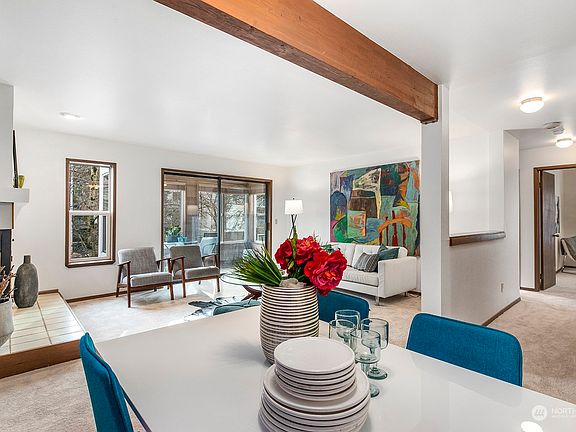 Rarely does a condo with this much room and such a good one floor layout become available at under $400,000. The expansive living/dining area with enclosed sun porch extends the space even further for year around use Two bedrooms, each with ensuite baths, insure privacy. Cozy up to the wood burning fireplace or entertain a crowd in the open dining area. New carpeting, paint, water heater and stainless appliances, in unit laundry, dedicated parking and tons of storage space (primary has walk in closet). Located in a small complex with easy access to transit, park and retail amenities. Take the light rail south to the University District or be downtown in 15 minutes from the Northgate Station. Time to make this Heritage Place condo home.