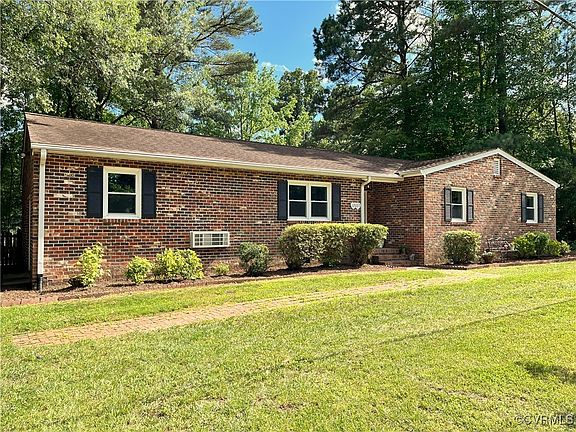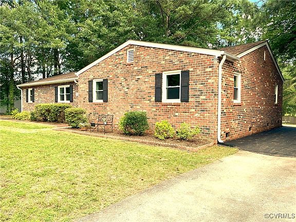 This expansive, updated Brick Ranch in Bon Air boasts 3 bedrooms and two full baths. The blend of exposed brick with modern amenities creates an ideal residence for easy living and effortless entertaining. The generously sized kitchen includes an island, granite countertops, luxury vinyl plank flooring, stainless steel appliances, a double-basin sink, dining area, and a brick fireplace. The dual-sided brick fireplace separates the kitchen from the family room. Fresh paint has been applied throughout the home. Bathrooms have been updated, featuring ceramic tile floors. Wainscoting is present in most areas of the house. The spaciousness of the bedrooms will impress you! The primary bedroom includes two double closets and an ensuite bath. The other bedrooms also feature double closets. The bonus room offers an additional 256 sq ft of flexible space suitable for play or work. You will appreciate the inviting covered front stoop, large deck, circular driveway, fenced backyard, 2-car detached garage with electricity, mature landscaping, and extra parking spaces. The location is highly convenient to schools, shopping, dining, entertainment, and major highways. Additional amenities include replacement windows, ceiling fans, attic access, and brick sidewalk. This property is absolutely move-in ready - make sure to visit today!