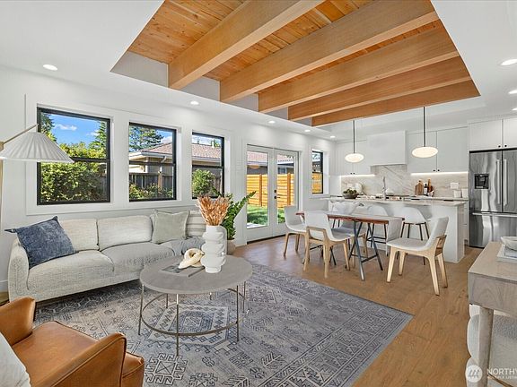 Welcome to your brand-new dream home in Broadview! This two-story, stand-alone residence was just completed in 2025, with meticulous attention to design, detail, and natural lighting. The spacious and bright, open-concept living area is perfect for relaxation and entertainment, with a custom exposed-beam ceiling, large kitchen island, and beautiful natural quartzite countertops. The primary suite boasts vaulted ceilings and an expertly tiled bath with curbless shower and heated floors. Bonus 4th bedroom/dining/office on main floor, with two additional bedrooms upstairs. Oversized and private grassy yard. Just blocks away from eateries and Carkeek Park, with easy access to I-5, 99, light rail, and downtown. Attached garage. Pre-inspected.