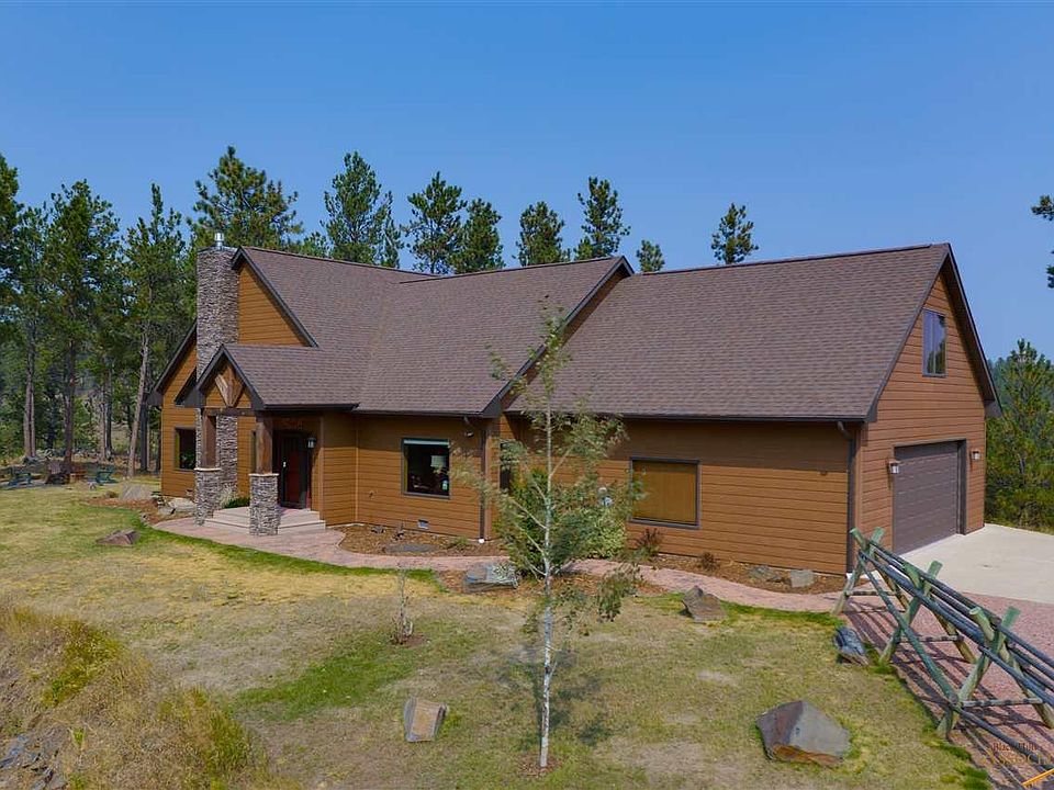 Beautiful well built, well maintained mountain home north of Hill City. Wonderful Black Hills views! 3 bd/3 ba, 2520sf home on 10 gorgeous acres. Secluded, private subdivision and acreage. Vaulted ceilings in great room is comprised of the living room with gas log fire place, dining room with patio doors to the open deck, and the kitchen with granite counter tops, soft close drawers/doors cabinetry. Engineered wood flooring throughout the home. Large master bedroom en suite bath, fireplace, and walk-in closet. 2nd bedroom on main floor has Murphy bed. Upstairs sitting room with skylight, full bath, and bedroom. Geothermal heat on main floor with cove heating upstairs. Crawlspace. 2 car attached garage. No vacation rentals allowed in this subdivision. This is a remote, secluded area of the Black Hills. Enjoy it!