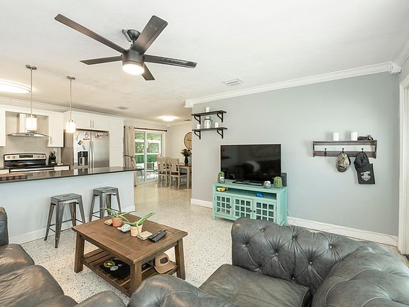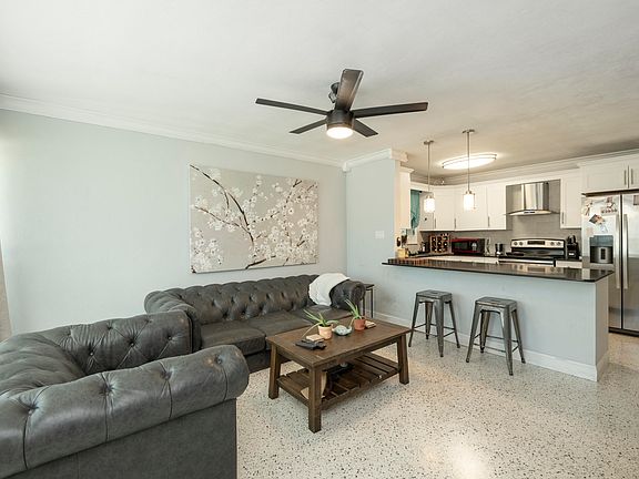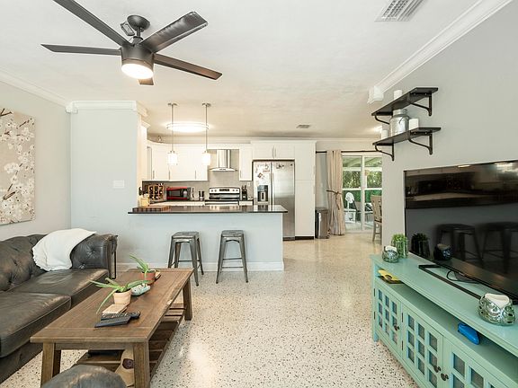 New Listing! This beautiful mid-century CBS home boasts classic terrazzo floors throughout. Spacious corner lot is fenced and offers plenty or room for pool or gardens. Home has 4BR/2BA including master with custom walk-in closet. The kitchen is updated with breakfast bar, granite countertops, and stainless appliances & opens to living and dining areas. Home has impact windows, 8000 watt new generator and sewer line was replaced in 2019. Features: New Central AC and duct work, bonus enclosed patio, laundry room, off street parking, carport, and more! Owner is a lic. real estate agent.