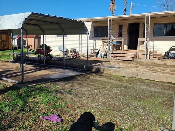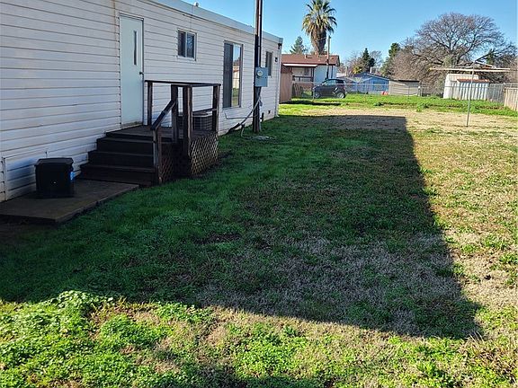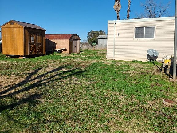 Just a well maintained, mobile home sitting on a large level lot. Covered parking on concrete pad and a storage shed with power. Water is near the front of shed. Small front porch deck. Large pecan trees in yard. Fully fenced with cyclone fencing. Pest report on file. Family Estate selling. As you can see by the pictures very spacious rooms easy flow through out. Kitchen does have some upgrades. Rear slider off dining area has no landing or deck. Owner didn't use that entry. Limited furniture still remains due to Estate sale. Property is ready to go! Escrow opened at Mid Valley Title with Michelle. Trust has been approved and Title looks good.
