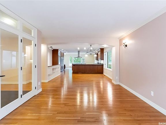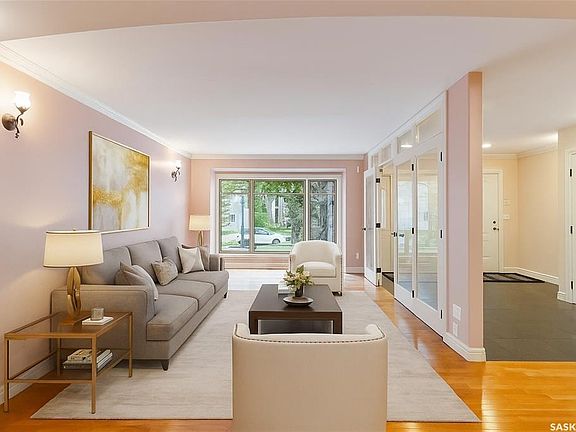 Welcome to 1203 15th St E in Varsity View. This 1,788 sq. ft. fully developed bungalow, built in 1992 and updated since, offers a spacious layout. The main floor includes a large foyer, living and dining areas, an updated kitchen with a SubZero fridge and Miele dishwasher, a computer nook, and a family room at the back. A generous bedroom with double doors features a walk-in closet, and a 3-piece bath with large shower is across the hall. The laundry room comes with built-in cabinets. The primary bedroom at the end of the hall boasts a 3-piece ensuite with soaker tub, a walk-in closet, and direct access to a concrete patio. The basement includes newer flooring in the family room, a wet bar, three bedrooms, a 4-piece bath, a storage room, and another storage area previously housing an elevator. The yard has great potential. A fence was added to allow for more parking behind the home. Pushing back the fence could unlock endless possibilities. The double attached garage is insulated, boarded, measures 23x25, and has a wheelchair ramp. Newer shingles ('21). The location is prime, close to the University and 8th Street. Not often does a bungalow this size with an attached garage come to market in Varsity View. Don't miss the opportunity! *photos showing furniture are virtually staged.