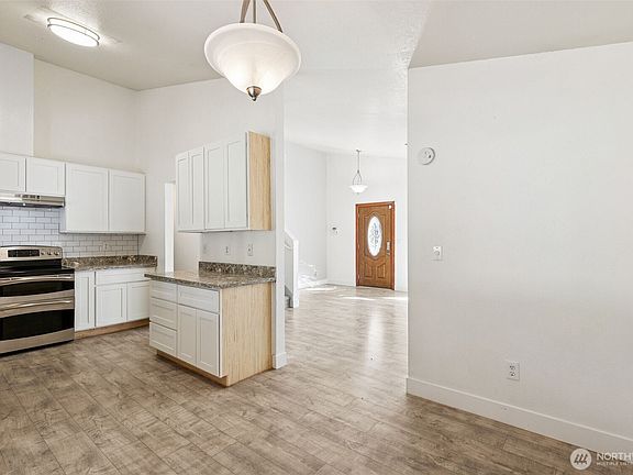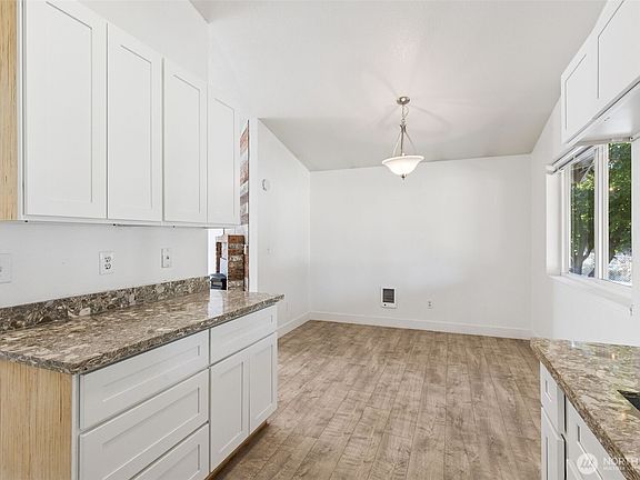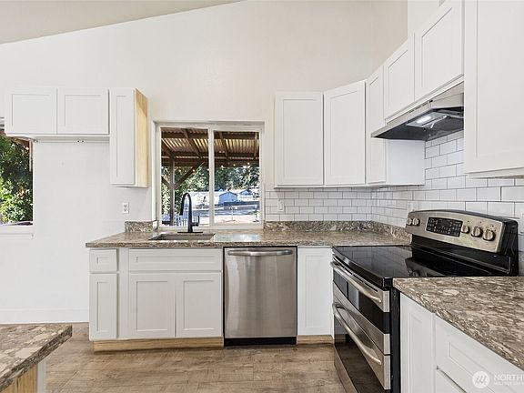 Gorgeous Tacoma/Spanaway home tucked away on a private cul-de-sac! Step inside to an inviting kitchen featuring brand new cabinets, counters, backsplash, and stainless appliances! Enjoy vaulted ceilings and open dining that flows into the spacious living room filled with natural light, new flooring, and a cozy pellet fireplace. The lower-level family room opens to a massive covered deck—perfect for year-round entertaining! Primary suite includes a private bath and walk-in closet, plus 2 additional bedrooms upstairs and 1 more on the lower level. One-car garage with extended driveway parking. Conveniently located near schools, shopping, freeways, Spanaway Lake, golf course, park, JBLM back gate & Sprinker Recreation Center!