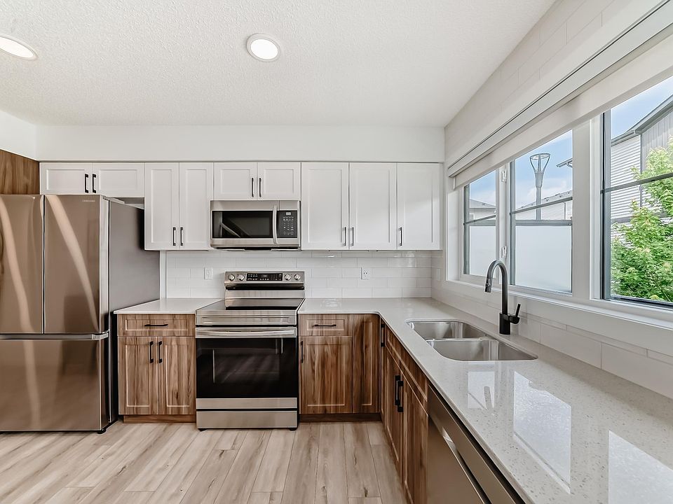 FORMER SHOWHOME. Welcome to Glenridding's newest listing. This meticulously-kept home is ready for a new owner. The ground floor features a laundry room and a walk-in closet. The main floor features oversized windows, a fireplace, featured living room and a kitchen with an upgraded pantry option and appliances that look like they are brand new. Also off the main floor is a balcony that overlooks green space and trees. Upstairs is beautiful, the primary bedroom features an elegant slat accent wall. The ensuite showcases a 4-pc bathroom. . The secondary bedroom also features a board and batten feature wall, as well as another full 3-pc, featuring a walk-in shower. The heated, attached garage is perfect for cold winter days. Central A/C comes included as well. This home is located steps away from Rabbit Hill Road, and gives you quick access out to the Henday or Shops of Windermere.