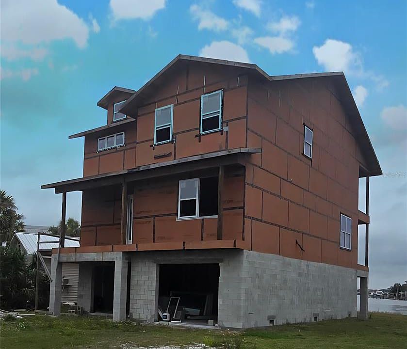 Under contract-accepting backup offers. Under Construction. On the water opportunity 3 story home with a great view in desired Indian Rocks Beach! New construction home 1/2 completed for you to finish to your standards and preferences. Solid concrete block construction on bottom floor with underground piling foundation for extra wind speed strength. Top 2 floors of living space are frame construction for better energy efficiency, built to 150MPH minimum wind strength! Home is through frame stage and ready next for insulation and drywall. All mechanical trade rough-ins are completed, except electrical. Still time before drywall to easily change/tweak any currently built wall layouts. Buyer to finish home from this current stage with all of their color/specification preferences. Flood zone property, however, zero hurricane damage from any of the large recent storms! Home is built up higher than todays building code standards, so flood insurance is at the most reduced rate. No HOA fees.