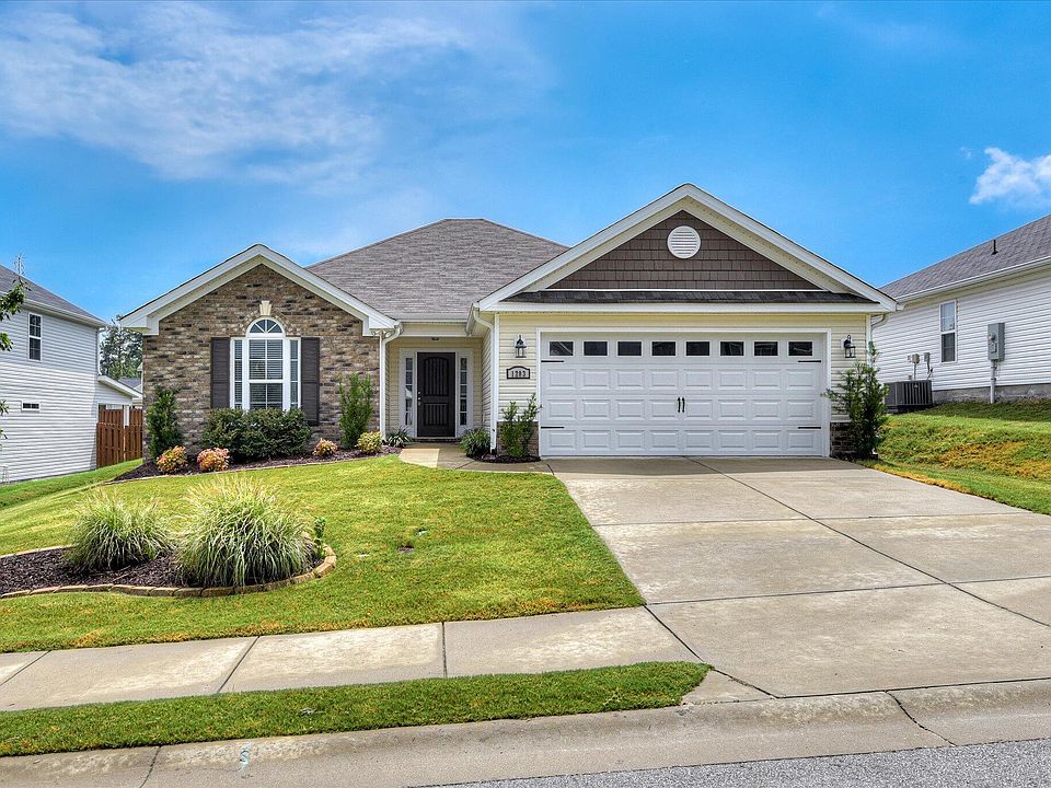 The desirable Baldwin 4 plan by Beazley Homes offers vaulted ceiling in great room with fireplace. Open arches leading to kitchen with granite countertops, stained cabinets, kitchen island sink and breakfast bar. Power pantry offers additional storage options or can be used as an office. Mud bench with hooks helps keep your home organized. Large owners suite has walk in closets and private bathroom with double sink vanity, garden tub and separate standing shower. Bedroom 2 and Bedroom 3 are spacious with large closets. Full bathroom in hallway. Automatic sprinklers and sod, Resort style pool and pavilion. Fresh paint and new flooring through most of the house. Sidewalks throughout the community. 2 miles to Fort Gordon Gate 1 and 2 and all shopping.