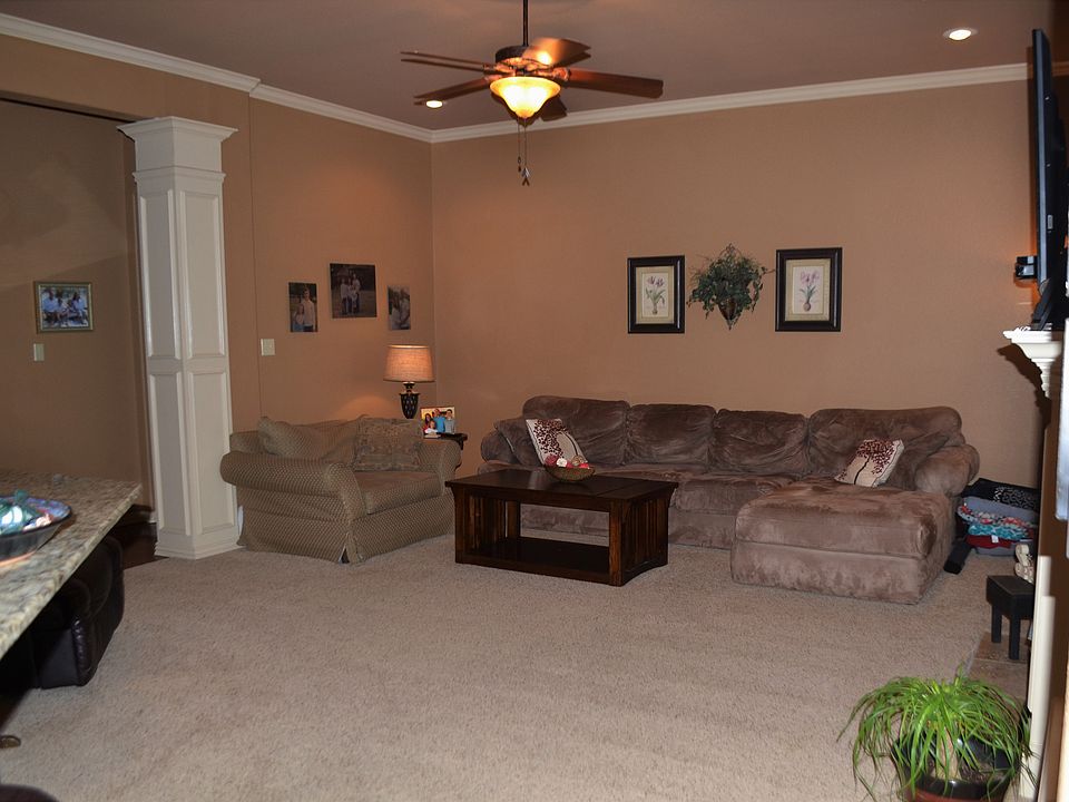 Designed for gracious entertaining with beautiful crown molding. Open kitchen and living area. Granite and stainless appliances. Master suite with walk-in closet, separate shower and whirlpool tub Split floor plan. Tray ceilings. Security system, 3 car garage, Privacy fenced. 1 year old Above ground pool with deck, 1 year old 4x6 storm shelter and pergola stay! All this at the end of a culdesac!!