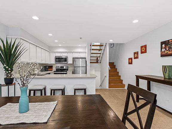 Stylish 3-Bedroom Townhome with Golf Course Views in Coveted Evanston Terraces. Set in the highly sought-after Evanston Terraces community, this contemporary 3-bedroom, 2 1/2 bathroom townhome blends modern comfort with wonderful golf course views-all in a prime Northeast Evanston location. East facing, the main level has an open floor plan. Kitchen features ample cabinet space and a breakfast bar, flowing seamlessly into the dining area and family room. Sliding doors opens to a private patio-ideal for enjoying morning coffee or evening gatherings. The dramatic living room impresses with soaring vaulted ceilings and an open staircase that enhances the home's airy feel. Upstairs, the second-level bedroom with en-suite bath has stellar views, while two additional bedrooms and a full hall bath occupy the third floor. A lower-level mudroom leads directly to the attached garage. All the modern conveniences which include in-unit washer/dryer and central air. Fabulous location: walk to "el" and Metra, Lake Michigan and Central Street shopping, dining and entertainment. Close to Northwestern University.