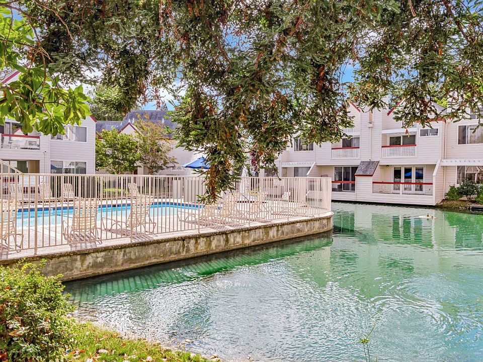 overlooking the beautiful pond and fountains. The home's thoughtful layout includes 2 spacious bedrooms. The primary suite includes an en-suite bathroom and walk in closet and the second bedroom has ample closet space with a bathroom which connects to the hallway. Both have sliding door access to a patio . Enjoy the convenience of an in-unit washer and dryer, making laundry a breeze.The functional kitchen is equipped for all your culinary needs, featuring a dishwasher, refrigerator, and an electric oven range, all framed by ample cabinet space.The community amenities include a pool, indoor spa, hot tub and tennis court perfect for unwinding and socializing. The unit includes a detached one car garage and one designated parking space. Perfectly situated to enjoy the best of Peninsula living, you are moments away from wonderful shops, restaurants, entertainment and commute corridors. Don't miss this opportunity to own this comfortable and practical home.