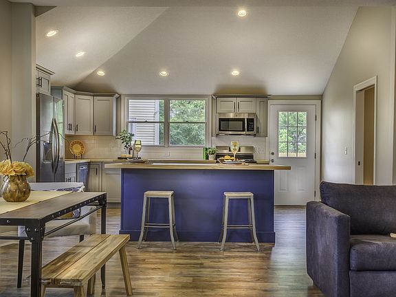 - InteriorFeatures: Kitchen Island, Vaulted Ceiling(s), 1st Bdrm En Suite, Countertops-Solid Surf