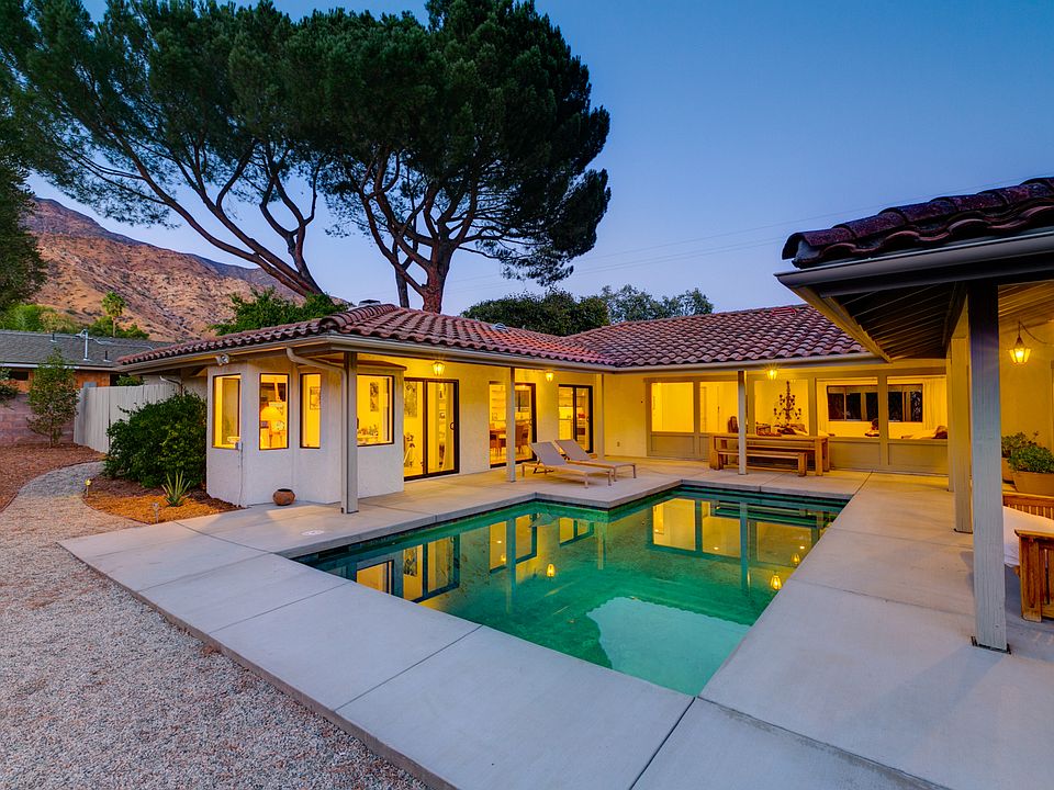 An oasis in the center of downtown Ojai invites indoor-outdoor living. This mesmerizing single level u shaped home with Spanish roots was re-imagined. Gracefully and tastefully appointed with top of the line interior design. The luxurious master suite was practically built for relaxation and reflection. The attached master bath proves no exception, boasting a separate double vanity with views of the backyard, the space offers an elegant, natural aesthetic: the use of marble and the stone-inlaid tiled walk-in shower complete the space. The vibrant setting is simple, sophisticated, and fun and features a generous backyard on 1/3 of an acre with a sparkling heated swimming pool, built-in BBQ, outdoor fire pit, and a custom wooden playhouse. A variety of fruit and mature olive trees, raised veggie beds, and bordering hedges make the backyard feel like your own private oasis. Located within minutes to downtown, nearby shops, and restaurants.