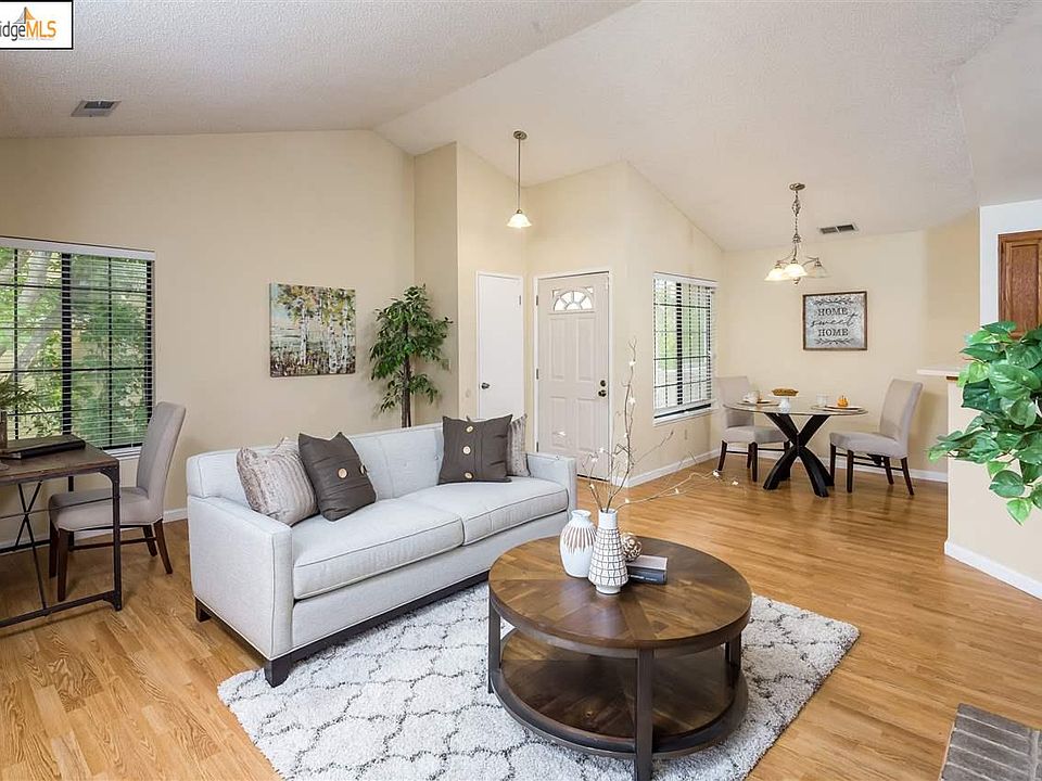 Looking for an amazing location? This is the perfect property for you! This upstairs condo has a beautiful Master Bedroom suite, spacious dining area, and excess natural light. The refrigerator, washer and dryer all come with the house. The home also offers both hardwood flooring throughout and wall to wall carpeting in the bedrooms. Enjoy an evening on the patio deck or take a splash in the community pool for outdoor relaxation. Parking is provided through a private one car garage and in the parking lot. Very desirable neighborhood with quick commuting to bart and freeway access. Home warranty available and this unit is available as of now!