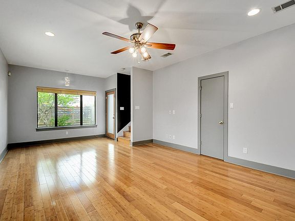Fantastic East Austin single family home with amazing views of Downtown! High ceilings, open floor plan, lots of great windows and large kitchen. Granite counters, lots of cabinets and counter space, stainless steel appliances including refrigerator and built-in microwave! Downstairs has a large living area with room for dining, kitchen, laundry room, half bath, storage and garage. Upstairs has three spacious bedrooms. Primary bedroom has a private balcony and spa-like bath with downtown views. Bamboo floors and designer blinds throughout with plenty of storage. Attached garage. Private fenced/gated yard with great outdoor spaces in both the front and back yard. SO close to local restaurants, bars, fitness/yoga studios, shops, and public transit. Walkability score: 93!