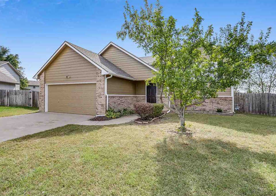 Beautiful updates and finishes pair with an excellent split-level layout in this 5 bedroom, 3 bath Goddard estate. With over 2,200 sq. ft. of space and on a lot that's nearly a quarter of an acre, you'll have plenty of room to spread out here. This home also has a BRAND NEW ROOF! Pull into the driveway and you'll notice the stunning curb appeal, with well-manicured landscaping, a two car garage, and a beautiful partial brick facade. Enter the home to find a living room with bright windows and a vaulted ceiling that provide a breezy, open feel. The kitchen and dining room are open to the living room, giving you the perfect layout for entertaining. With an eating bar island, sleek subway tile backsplash, quartz counters, tons of cabinet space, and stainless appliances that are included, the contemporary kitchen is any home chef's dream! The dining room is seated in front of sliding door access to the back yard and big picture windows that provide lovely views of the outdoors beyond. Notice the brand new flooring and new carpet all throughout. The master bedroom has a remodeled, spa-like en suite bath with a quartz double vanity and tiled shower. There's a walk-in closet that provides plenty of storage space. Two more spacious bedrooms with sizable closets and a second updated full bathroom finish the main and upper floors. Head downstairs and find a family room with walk-out access to the back patio. This area has enough space for an entertainment area and a pool or ping pong table! Two more bedrooms and a third full bath complete this spacious home. This home is tucked away on a quiet cul de sac but is located close to highway access, several dining and shopping options, local schools, Tanganyika Wildlife Park, and more! Schedule your private showing and come see it today before it's gone!