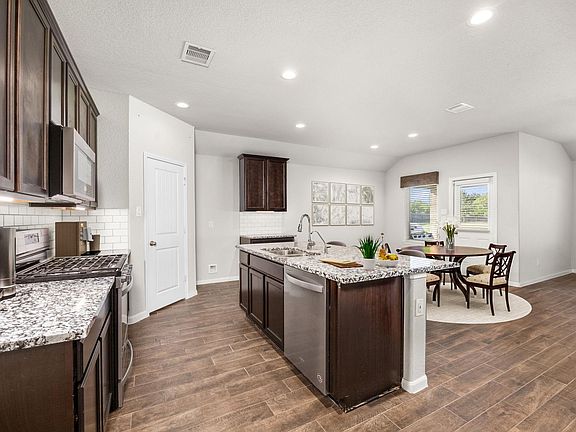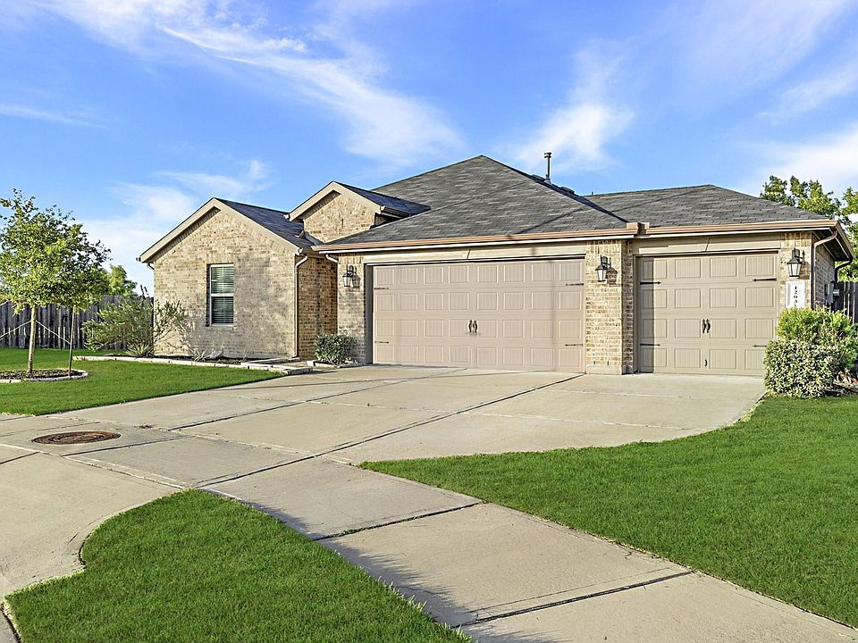 Experience the perfect balance of elegance and comfort in this beautiful home set on nearly half an acre. This home welcomes you with an inviting entryway filled with natural light and a seamless open-concept layout that transitions effortlessly between spaces. Design touches include warm interior paint, recessed lighting, and custom tile flooring. The stunning kitchen features granite countertops, subway tile backsplash, 42” cabinets, pantry, gas range, breakfast bar, and a versatile dining area. A dedicated flex room offers the option of a 4th bedroom or home office. The primary suite serves as a peaceful escape with dual vanities, a garden tub, walk-in shower, and an expansive closet. Step outside to a large, fenced backyard on a cul-de-sac lot, featuring a 3-car garage, extended patio, and plenty of space to design your dream pool or outdoor living area. Conveniently located near major roads and parks, this home combines style, space, and an exceptional location.