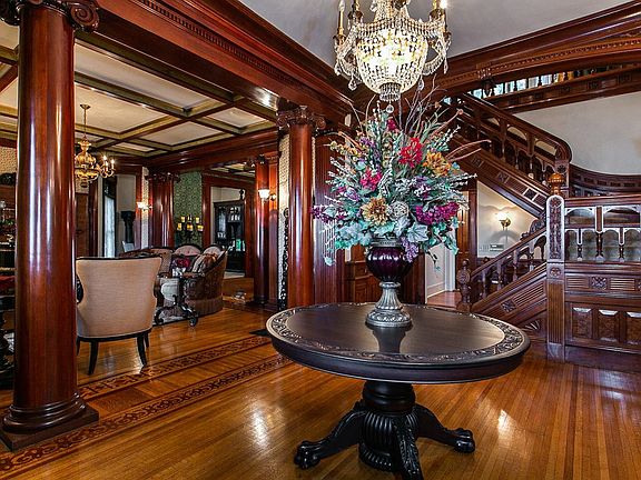 Dubuque's Finest! Grand Victorian "Painted Lady" on bluff with fabulous city and river views. Built by Dubuque's first lumber baron, this home is rich in cherry, walnut, maple & pine woods. Home completely rehabbed in 1992, newer slate roof, copper gutters and fabulous landscaping surround this magnificent home. The beautiful wrap around front porch invites you to watch sunrises, and the city lights in the evening. The current owners have done many quality upgrades and their pride shines thru. Four grand fireplaces, master suite with 17x15 sitting room & 14x10 walk thru closet. Beautiful tiled updated master bath - 18x32 Billiard room can be 5th bedroom.