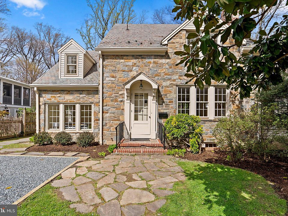 New in Woodside Park, this stately, expansive stone-front Colonial offers old world charm and thoughtful updates throughout. Spacious, airy and full of light, it boasts 9’ ceilings on the main floor, beautiful hardwoods and recessed lighting throughout and over 4,000 square feet of living area on three levels. The main level features an open, modern floor plan. The living room has crown molding, a stone fireplace and a big window overlooking the front yard. A cased opening leads to a formal dining room with sliding French doors opening to an expansive deck. Pocket doors lead to a sunny den and an office with windows on three sides. The large chef’s kitchen features vaulted ceilings, a large, two-tiered center island, a walk-in pantry, and plenty of table space for more casual dining. A bedroom and a half bath that has room to easily be converted to a full bathroom round off the main level. Upstairs you’ll find the primary suite with an en-suite bathroom and separate dressing room, two additional bedrooms and a recently updated full bath. The lower level offers a family room with a wood-burning fireplace, a half bath, a large laundry room, utility room, workshop and storage. Out back, the huge, level fenced yard with deck is ideal for those summer BBQs with neighbors and friends. Driveway will accommodate two cars for off-street parking. Ideally located close to two metro stations, 495, shopping and parks. Here’s What You’ll Love About This House: Great Woodside Park location, Large eat-in kitchen, 9’ ceilings, Primary suite with dressing room, Huge ⅓ acre lot, Loads of natural light. Here’s What’s Nearby: 0.4 mi to Sligo Creek Trail, 0.5 mi to Zinnia Restaurant, 0.6 mi to Fairview Road Urban Park, 0.9 mi to the Fillmore, AFI Silver Theatre, 1.0 mi to Downtown Silver Spring, Whole Foods Market, 1.3 mi to Silver Spring or Forest Glen Metro.