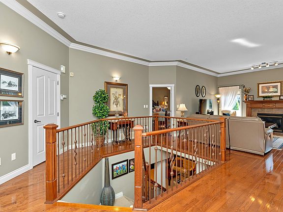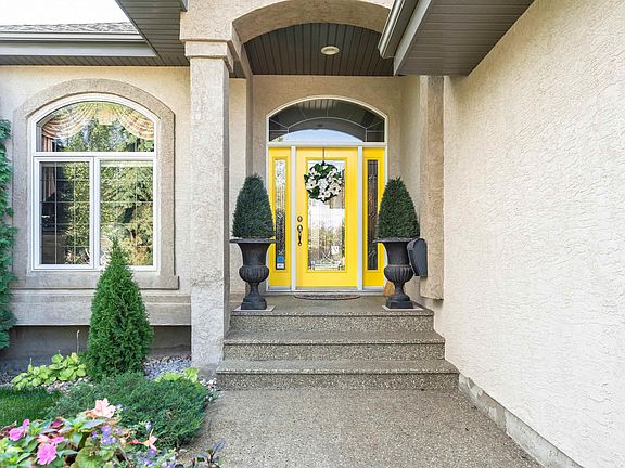 Stunning Custom Executive Bungalow by Ace Lange located in Whitemud Ridge in Hodgson This 3 bedroom, 2.5 bath plus a den home has many upgraded features including quartz countertop (main 2025), crown molding most of main level & most of basement, 10 ft ceilings (main) & 9 ft (basement), cabinets/sink in laundry rm, vac sweep in kitchen and more. The large grand entry looks over the open style concept, & the den is a good size with a closet. The kitchen has a large island, great for entertaining, with traditional cherry wood cabinets, quartz countertops, walk through pantry, stainless steel appliances (stove & microwave 2024, refrigerator & dishwasher(main) approx. 2 to 3 yrs old. The hot water tank 3 years old, AC 4 yrs old, new curtains in living rm, dining rm 2024. The large triple garage is insulated/painted, stippled ceiling & heated. The south facing back yard is private oasis. Walking distance to the ravine and park. Close to all amenities!!