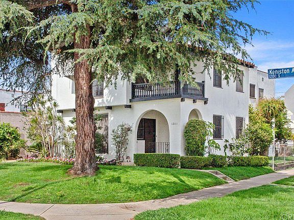 Welcome to this gorgeous, original Spanish duplex circa 1926 located on a generous corner lot in the beautiful Longwood Highlands area adjacent to Hancock Park. This unit is grand and spacious featuring 3bd/2ba, a living room boasting majestic fireplaces, an office/art studio, original hardwood floors throughout, an abundance of natural light, magnificent windows, two huge garages, laundry appliances, a recently landscaped front yard and a sweet backyard surrounded by prolific fruit trees and greenery. This is a special property that has been preserved with the charms, accents and characteristics of the 1920s and is waiting for a new tenants.