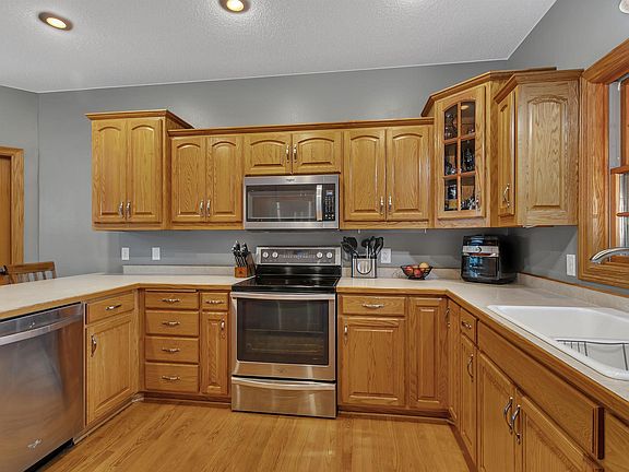 This quality-built home offers exceptional comfort with four same floor bedrooms, including a private master suite, premium kitchen cabinets plus pantry, hardwood floors, SS appliances, MF laundry, well designed main floor, 2 gas FP's & MF office. The lower level offers incredible flexibility with both a spacious rec room & a comfortable family room - perfect for games, movie nights or casual gatherings. Outside, enjoy a welcoming front covered porch, a huge level backyard perfect for play or gardening, a spacious deck for outdoor entertaining, and a handy storage shed. The in-ground sprinkler system keeps the lawn looking its best all season long. Roof replaced 5/2022. Nestled in the heart of Sartell, this home blends small town charm with modern convenience.