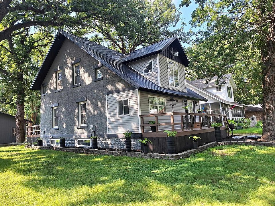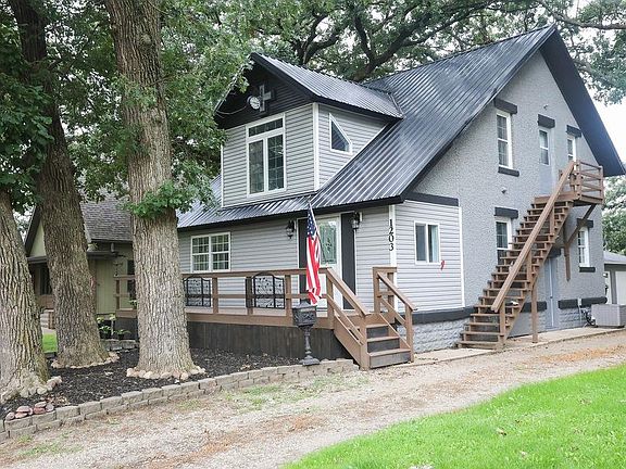 Lovingly Restored & Move-In Ready in Estherville! Perched on the hill with sweeping views and a spacious lot, this beautifully remodeled 3 bed, 3 bath home blends timeless character with fresh, modern style. Step inside and you’ll instantly feel the warmth of a home that’s been completely remodeled on the inside - new floors (including subflooring), new drywall, new ductwork and a fresh coat of paint throughout. The heart of the house is the brand-new kitchen — a true gathering space with a beautiful center island topped with granite, newer appliances, and a stylish backsplash that makes cooking and entertaining a joy. Enjoy the natural light with new windows that overlook the back deck. Upstairs, all three bedrooms create a private retreat, while the finished basement adds extra living space for movie nights, hobbies, or a cozy hangout. Thoughtful touches like laundry in both the upstairs and lower level make everyday living so much easier. The front porch has been reframed and insulated creating even more living space in this 1.5 story home. Outside, the detached garage fits 5 cars — perfect for a workshop, storage, or transforming into your dream man-cave or she-shed. The new outdoor deck offers a secluded and private retreat you've been waiting for with built-in seating and landscaping that's already done for you. Plenty of space on this 0.31 acre lot with extra space for a patio or fire-pit area and space to store an RV! Thanks to its location on the hill, this property stayed high and dry during last year’s rains, offering peace of mind along with beauty. With a new roof, new windows, new mechanicals, new electric, plumbing and a complete modern interior makeover, all the big projects are done — all that’s missing is you. This home is more than move-in ready… it’s ready to be loved. *Listing contains virtually staged photos.