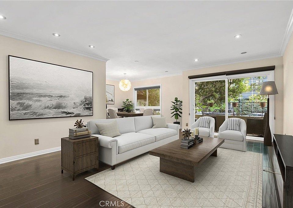 Welcome to your West Hollywood retreat at 1203 N Sweetzer Ave #118 within beautiful Villas Las Brisas, a stylish 1-bedroom, 1-bathroom condo offering comfort, convenience, and modern touches in one of LA’s most vibrant neighborhoods. The bright living area opens to a shaded front balcony facing lush greenery, perfect for morning coffee or evening relaxation. Inside, you’ll find engineered wood floors, a striking Murano chandelier, and a beautifully tiled bathroom with both a soaking tub and a separate shower stall. The kitchen features stainless steel appliances, a brand-new sink, plenty of prep space to inspire your cooking, and a built-in desk with plenty of storage for creative inspiration. The dual paned windows throughout and slider to the balcony are accented by custom shades perfect for privacy and insulation. The spacious bedroom has a luxurious walk in closet with built-in cabinetry, shelves and racks.