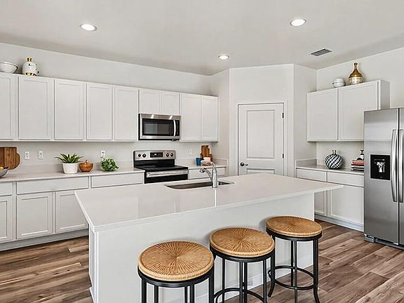 One or more photo(s) has been virtually staged. Under Construction. The Convington is a one-story home featuring a 3-car garage and an optimized living space. The open-concept floorplan allows the kitchen to overlook the great room and dining area that leads outside to a covered lanai. The kitchen features a large kitchen island with quartz countertops and stainless-steel appliances. The primary bedroom is located in the rear of the home for additional privacy and leads to an ensuite bathroom and large walk-in closet. Bedrooms 2 and 3 share a bathroom towards the front of the home, while bedrooms 4 and 5 share another bathroom nearby. Conveniently located nearby the bedrooms is a dedicated laundry room and linen closet for additional storage. The Convington is complete with a state-of-the-art smart home system. Pictures, photographs, colors, features, and sizes are for illustration purposes only and will vary from the homes as built. Home and community information including pricing, included features, terms, availability and amenities are subject to change and prior sale at any time without notice or obligation, CRC057592.