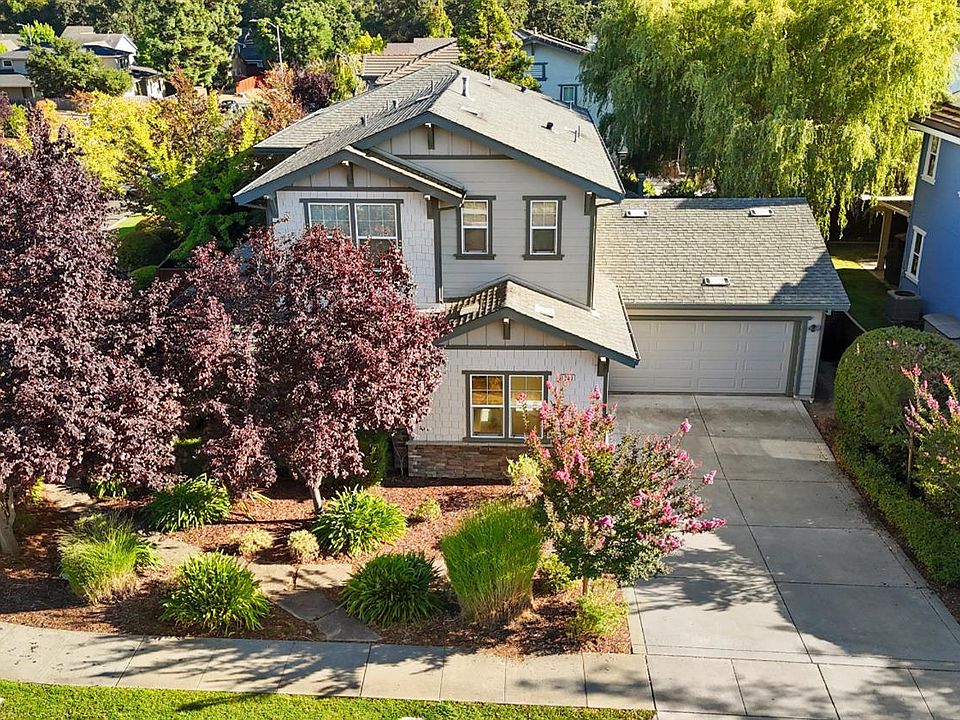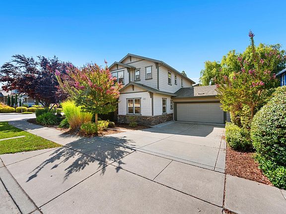 Modern Comfort in One of Napa's Most Desirable New Neighborhoods!! Beautifully landscaped front and back, this thoughtfully upgraded home offers stylish, easy living inside and out. Enjoy a spacious finished garage with ample storage and a home gym setup, plus a large driveway for extra parking. Inside, the open kitchen-family room layout includes surround soundgreat acoustics without the eyesore. A downstairs ensuite bedroom offers flexibility for guests or multigenerational living. Upstairs, the expansive primary suite is a true retreat. The shared full bath features dual sinks and a separate tub/toilet roomperfect for easier mornings. You'll also love the convenience of the upstairs laundry. Outdoor perks include a charming front patio, plum trees in front, and cherry, fig (possibly ripe!), and ginkgo trees in backjust steps off the slider. This home combines space, style, and locationall in one of Napa's most sought-after new communities.