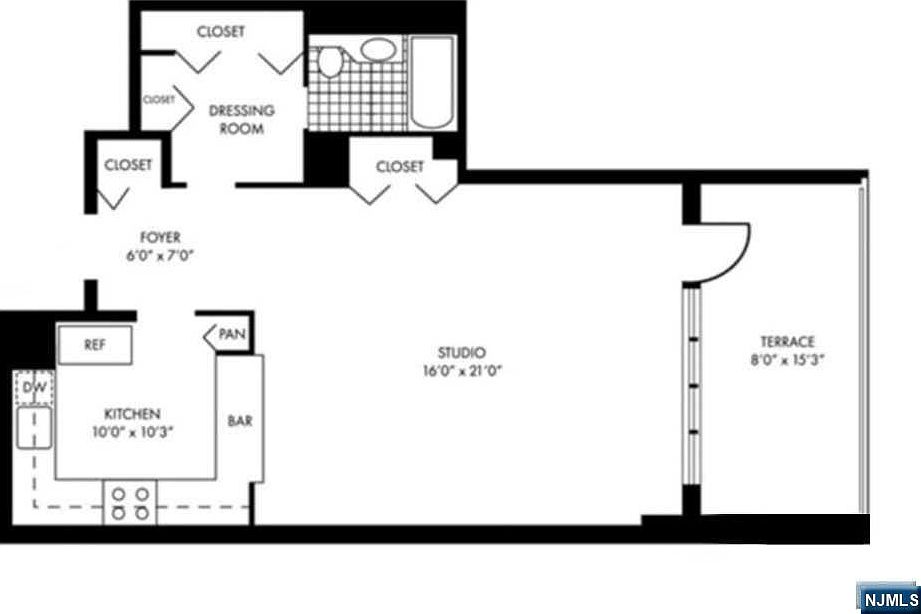 Presented by Tami Rapaport 201-665-5558 and The Rapaport Group. Spacious Studio in full-service building with sunset views! The enclosed terrace can be used as an office or separate bedroom area. Kitchen is open to Living Room/Dining Area with hardwood floors. Dressing area with great closets off of the full bathroom. Newer Bathroom Vanity and unit freshly painted less than a year ago. Building has recently renovated hallways. Assigned outdoor parking space comes with unit. Close to EVERYTHING! NYC Bus & Ferry nearby as well as shops and restaurants. Minutes to the GW Bridge and so close to Edgewater's Veterans Field Park. You will love the location along the river as well as the fabulous amenities (playground, tennis courts, 24 hour doorman/security, exercise room and pool).